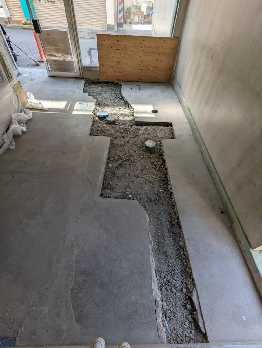 苦労した点といえば、給排水の工事でした。店舗では厨房のレイアウトによって給排水の配管ルートが大きく変わってきます。床下の状況など解体しないと分からないことが多いため、解体後に検討することも多々あります。