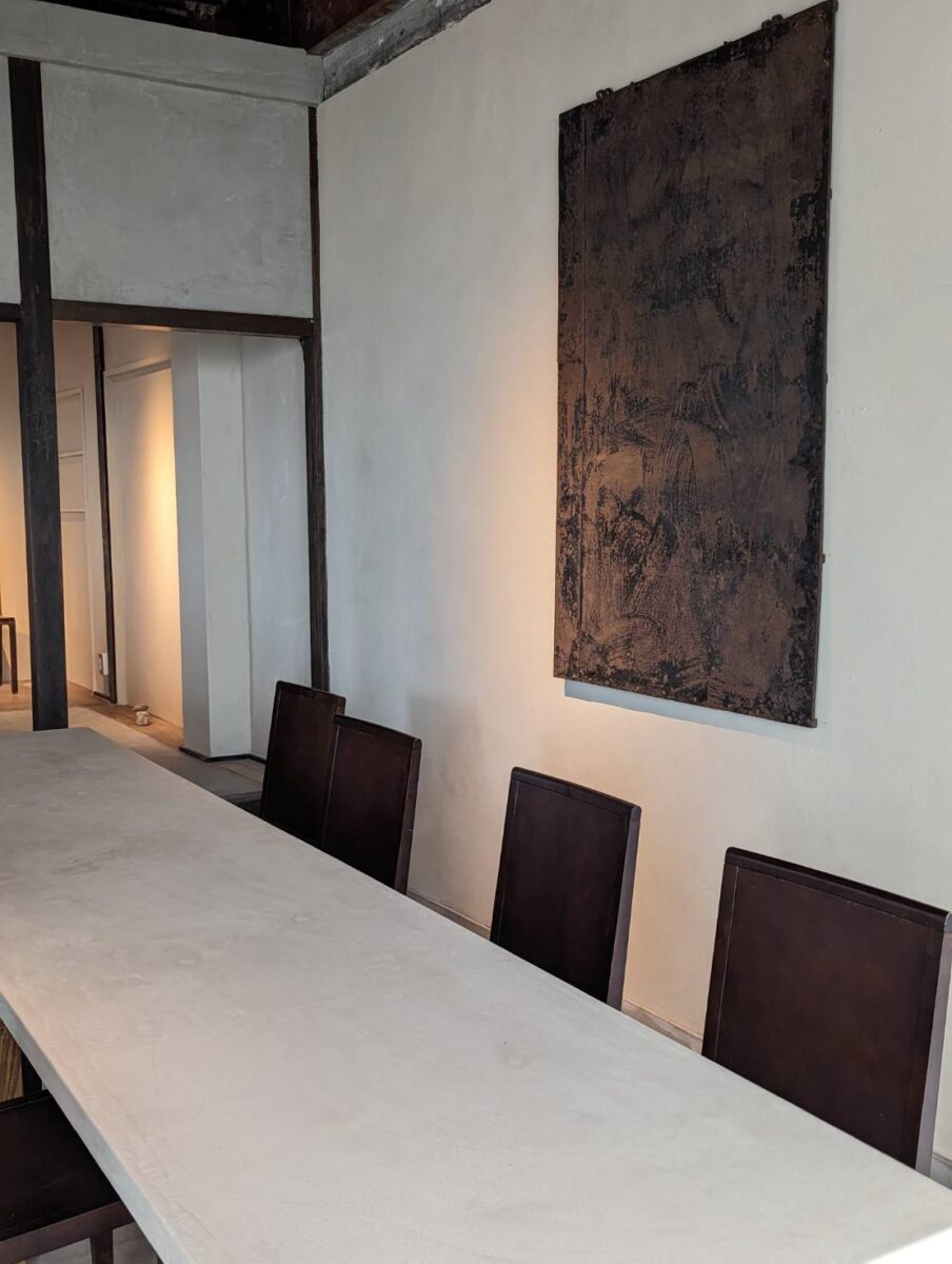 店内にはオーナーさんのセンス光るオブジェや鉄板、トタンなどがおかれ、まるで美術館のようなこころ落ち着く空間となりました。