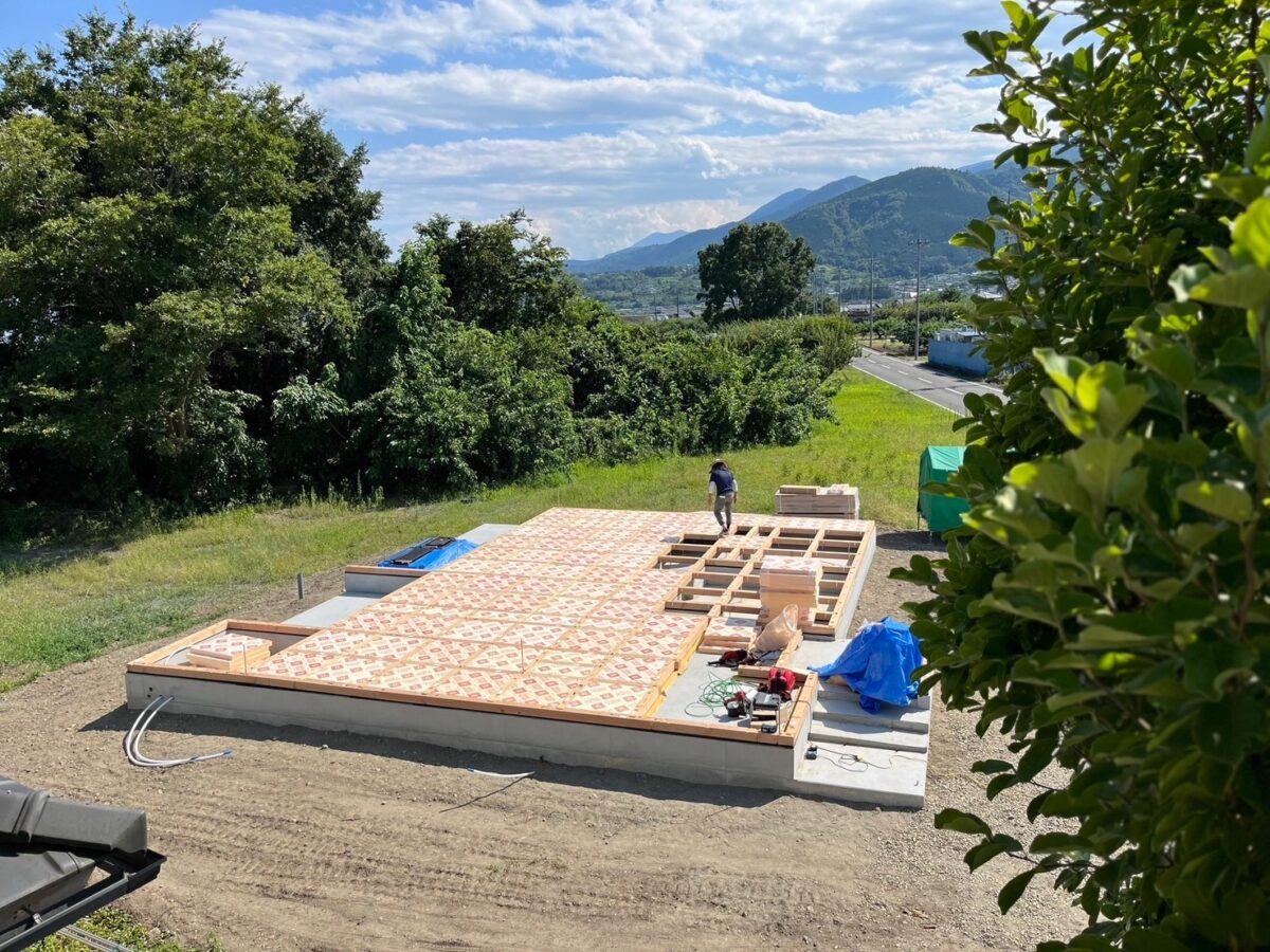7月下旬の一番暑さ厳しい中での土台敷は過酷極まりない。