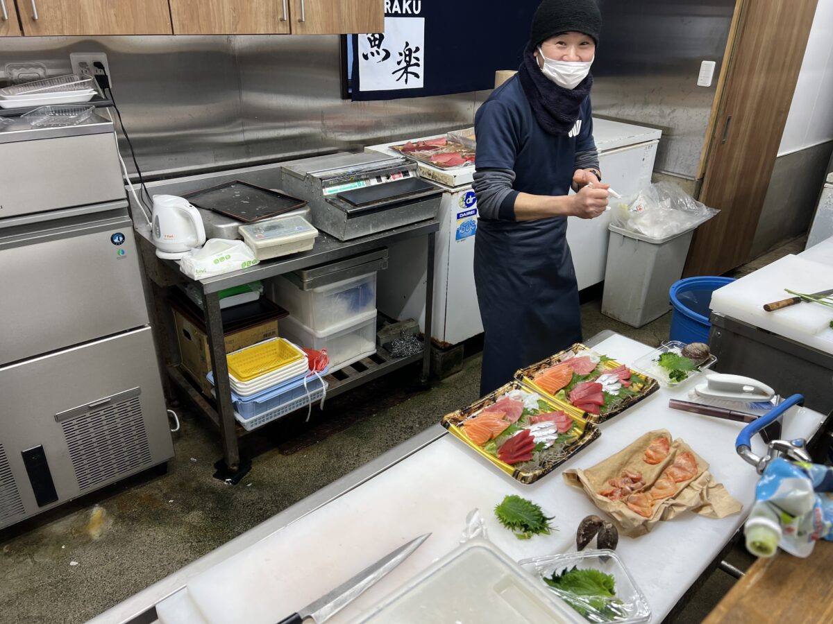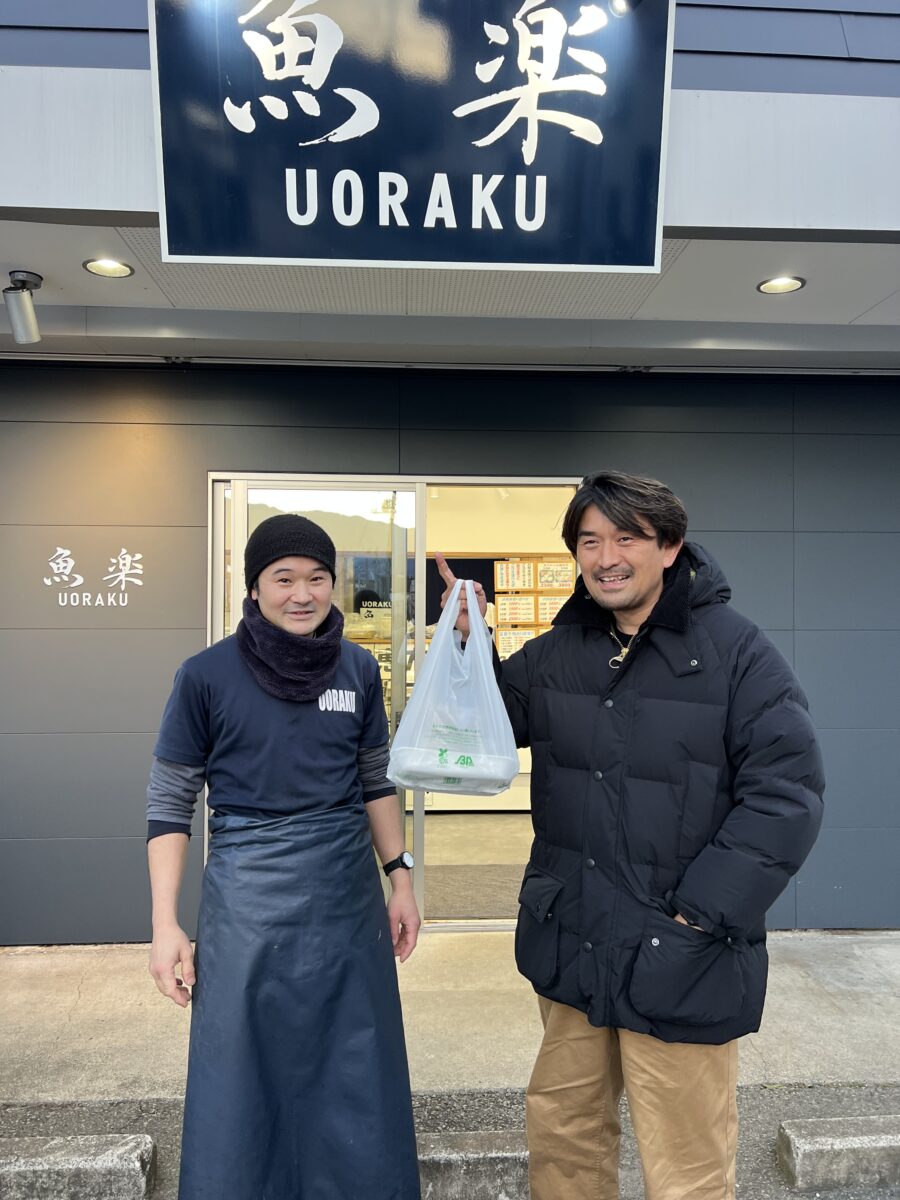 授業後、都留文化大学前で魚屋「魚楽」をしている韮崎高校時代の親友のお店に立ち寄りました。地域に愛される超人気店です。