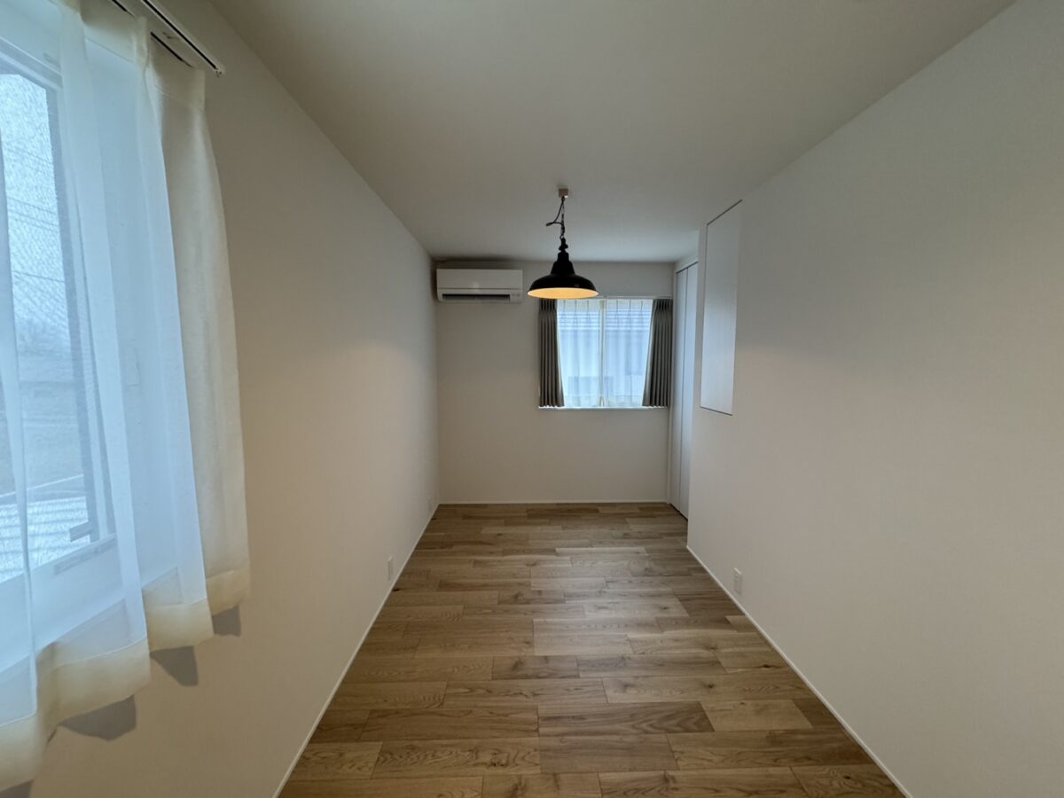 リビング階段をのぼった2階スペースも、部屋数を確保するために吹抜をつぶしてゆったりした寝室と子供部屋、WICと納戸を確保しました。