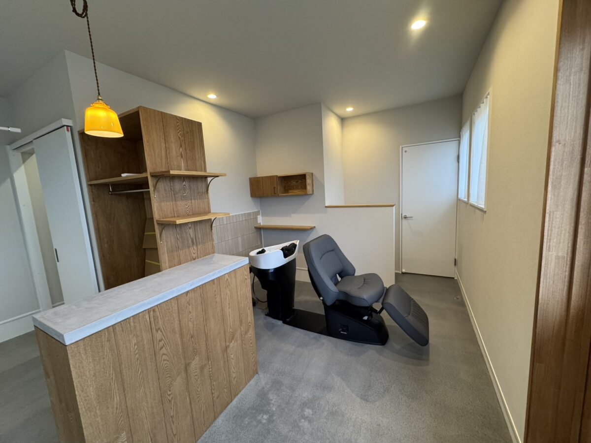 バックルームを通ってつながる奥様こだわりのサロンもとても素敵な感じに仕上がりました。