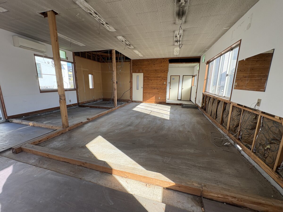 既存の内装を一度しっかり解体し、床や壁を撤去。