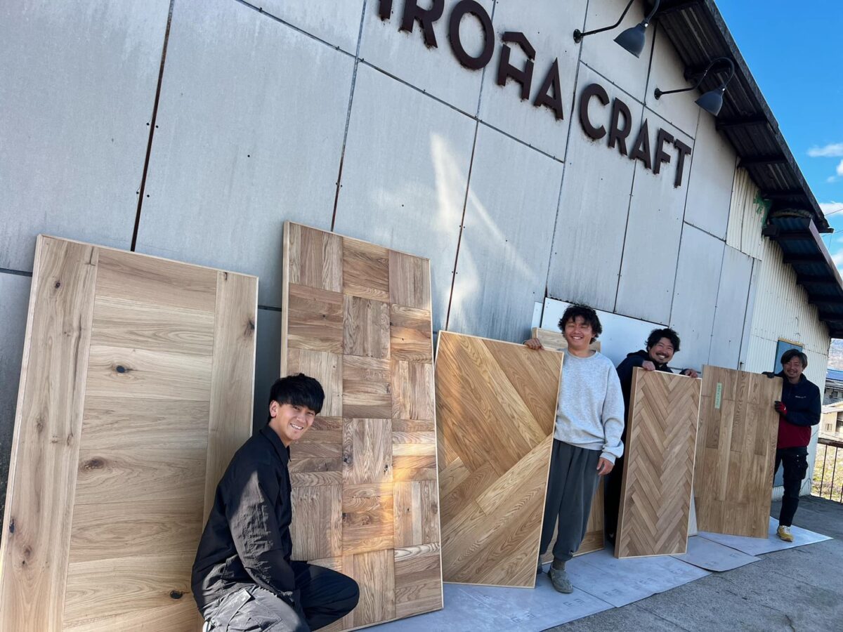 話しは変わりますが、4月12日にはアメリカヤ再生8周年のイベントを開催します。アメリカヤ入居者さんの楽しみな企画に加え、人気のパン屋さん8店舗が一緒にイベントを盛り上げて下さいます。イロハクラフトとしては、現場からでた廃材を圧縮したボードを使った看板作りのワークショップに加え、現場で余ってしまったフローリングを再利用したテーブル天板の販売を行います。