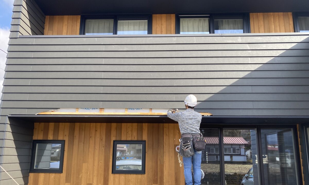 いつものイロハ大工チームに加え、板金屋さんと休日返上の上野君も手伝いに来てくれました。